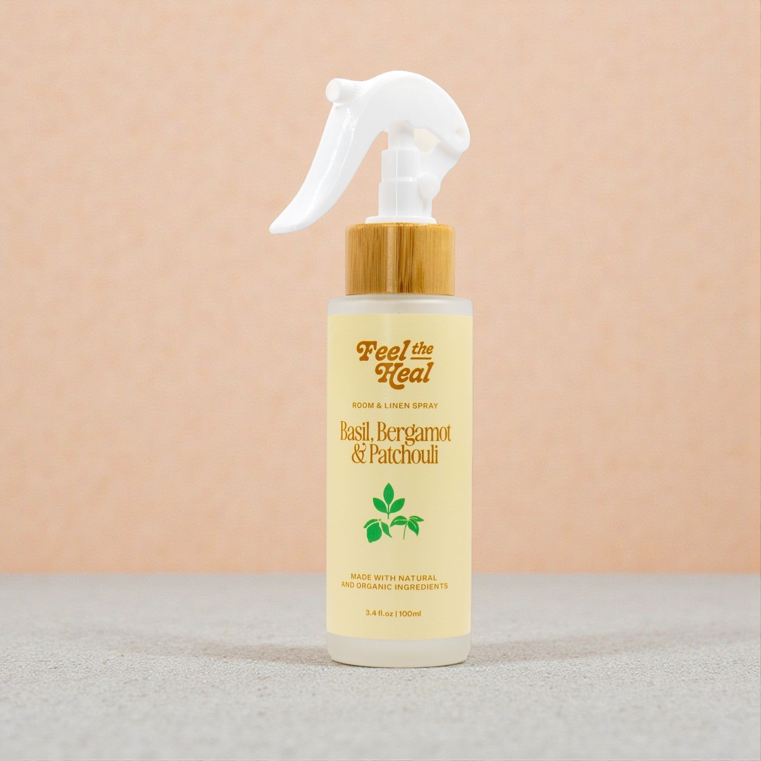 Feel the Heal Room & Linen Spray | Pure Essential Oil Mist for an Uplifting Home With Lavender and Basil as the variant names.